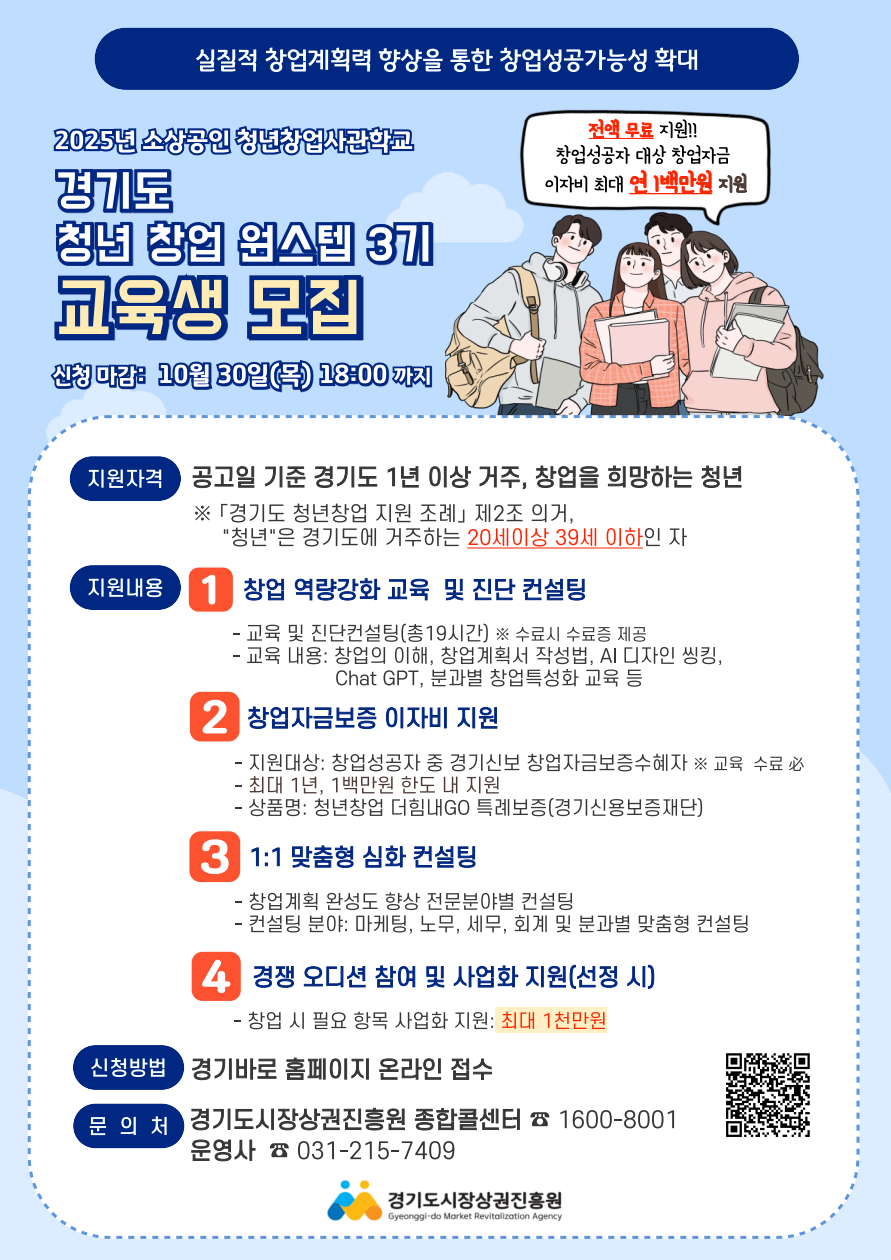 「2025년 경기도 청년 창업 원스텝 3차 모집 연장공고」